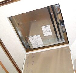 このシステムは、天井裏に「換気ユニット」と「暖房ユニット」が隣合って埋め込まれダクトで繋がっている。この両方のユニットの働きにより各部屋に温風を送って同時に換気も行います。